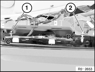 Preadjust measurements (C) and (D) (window glass breakage); only then should you actuate the window lift.