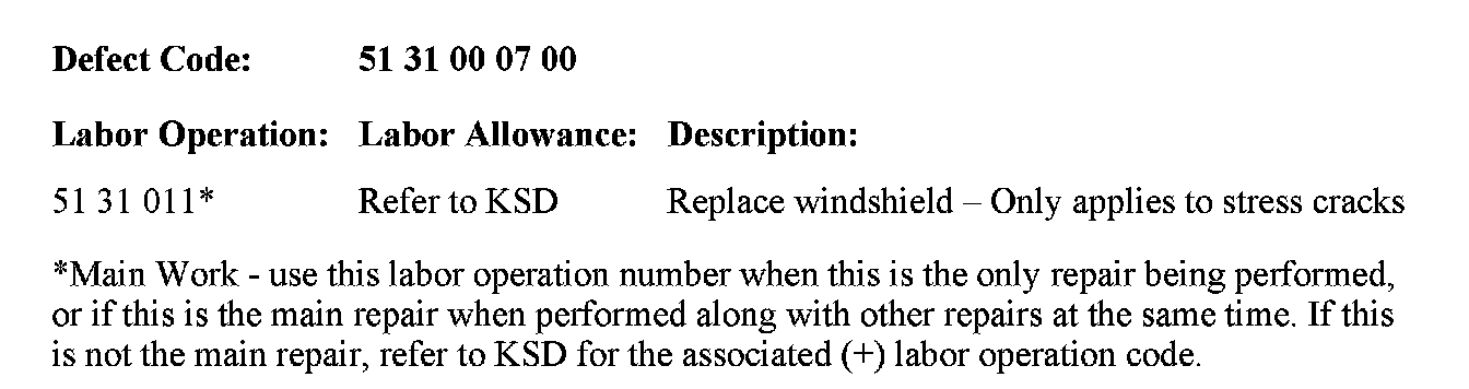 ^ Under very isolated circumstances, a stress crack may form due to a combination of glass position and heavy torsional loads on the body of the vehicle.