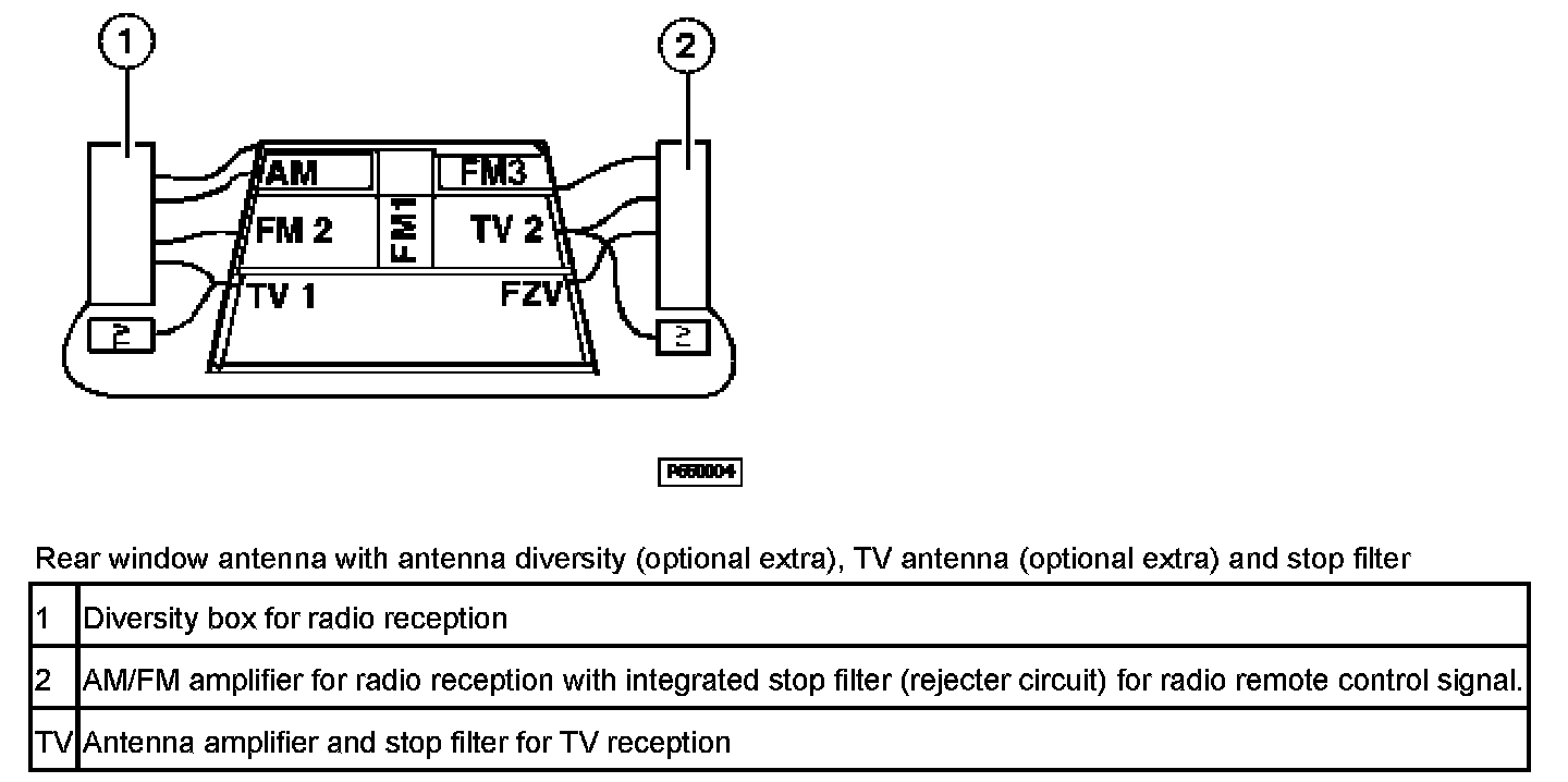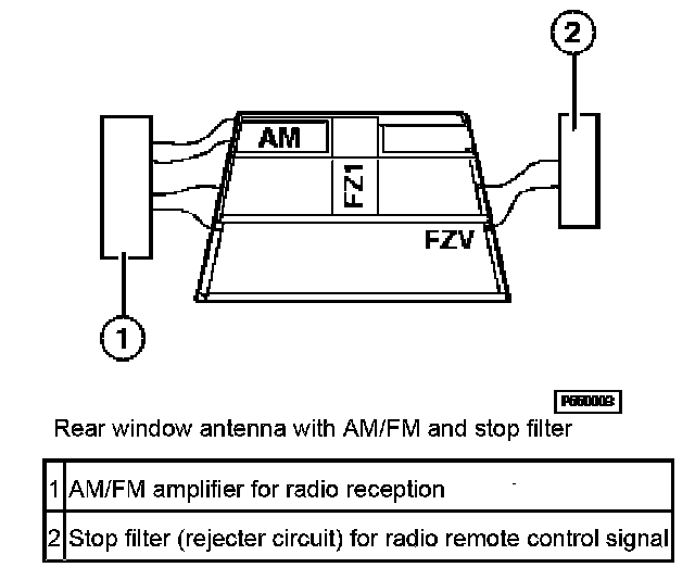 The receiver is accommodated together with the antenna in the interior rear-view mirror. The receiver transfers received radio signals via the FZV line to the central body electronics control module where they are evaluated.