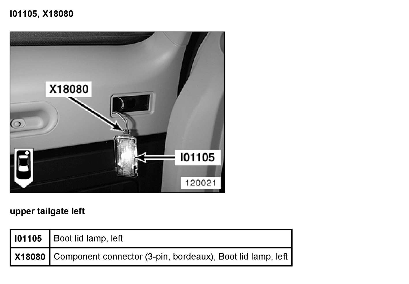 I01105 Boot Lid Lamp, Left