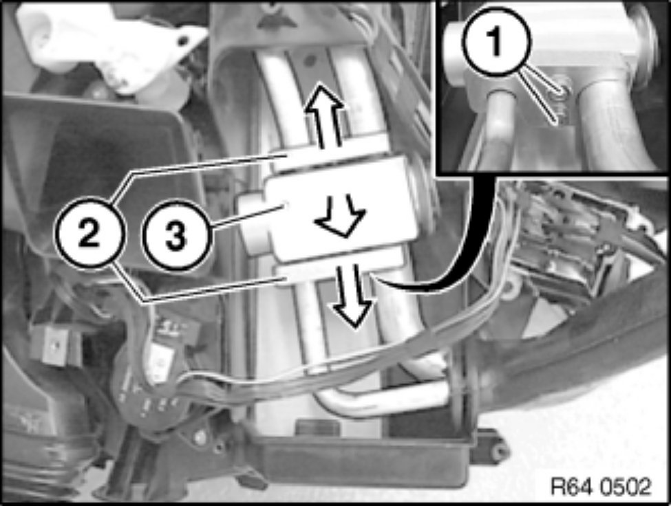 Pull lines apart a little and remove expansion valve (3).