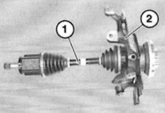 When the front axle differential is installed on the oil sump, the assembly ring (1) is forced over the sealing ring (2) and remains fitted.