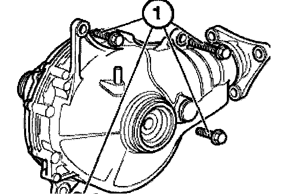 Release screws (1) and remove front axle differential.