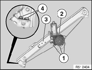 Turn flat motor (2) and detach from window regulator (3).
