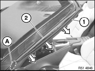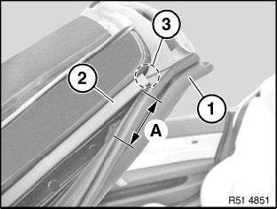 Position trim strip (1) over aperture (3) in A-pillar (1) and stick on parallel to A-pillar (1).