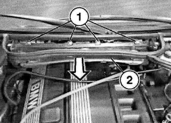 Note: The supports (1) of special tool 00 0 208 must rest on the bolt connection of both side walls.