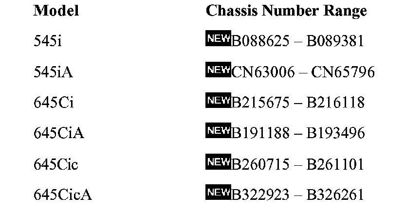 [NEW]This Service Action involves 545i, 645Ci and 645Cic vehicles, with N62 engines, which were produced from 09/01/2004 up to 03/10/2005.