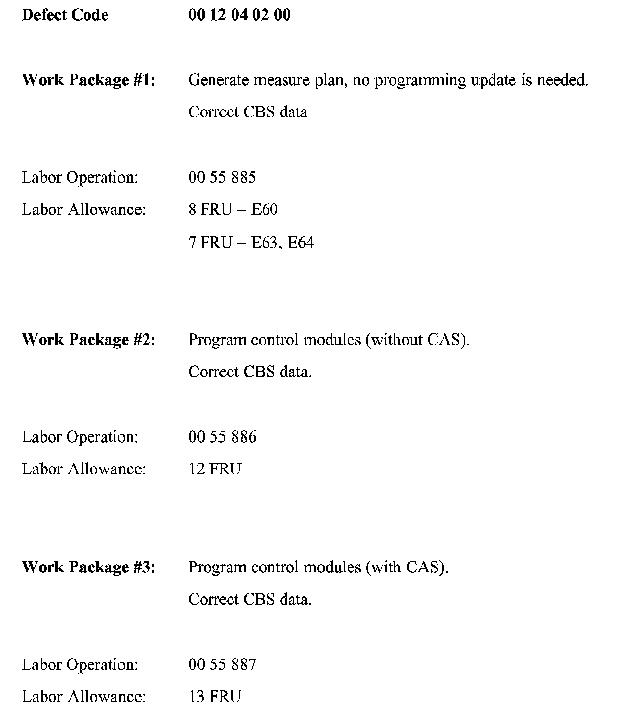 ^ Reprogram and recode the affected vehicles using Software Service Station loaded with CIP 17.1, or higher. For programming/coding instructions refer to SIB 09 05 01 Coding / Individualization / Programming), Procedure "B".