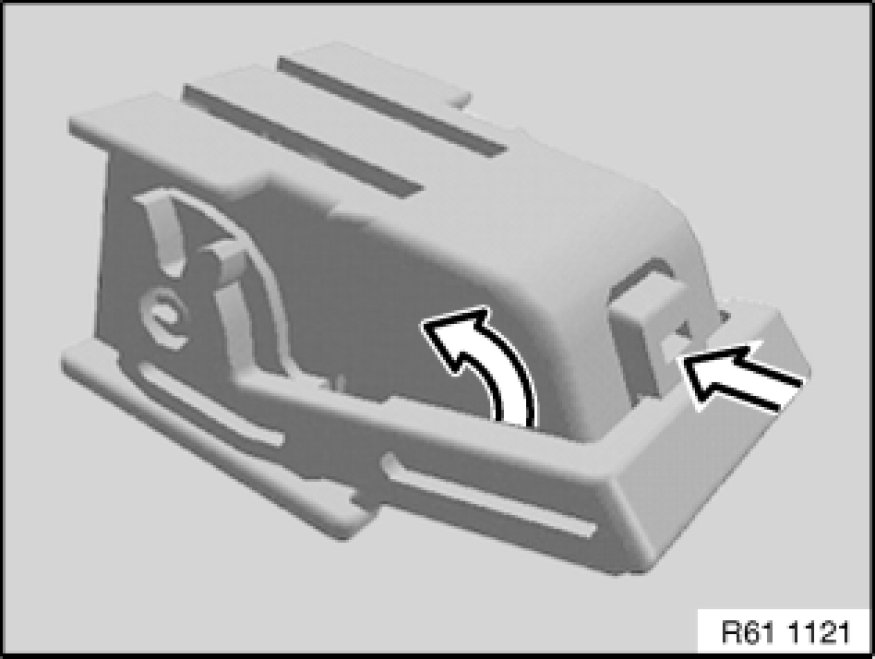 Open clip in direction of arrow and disconnect plug connection in direction of arrow.