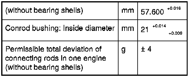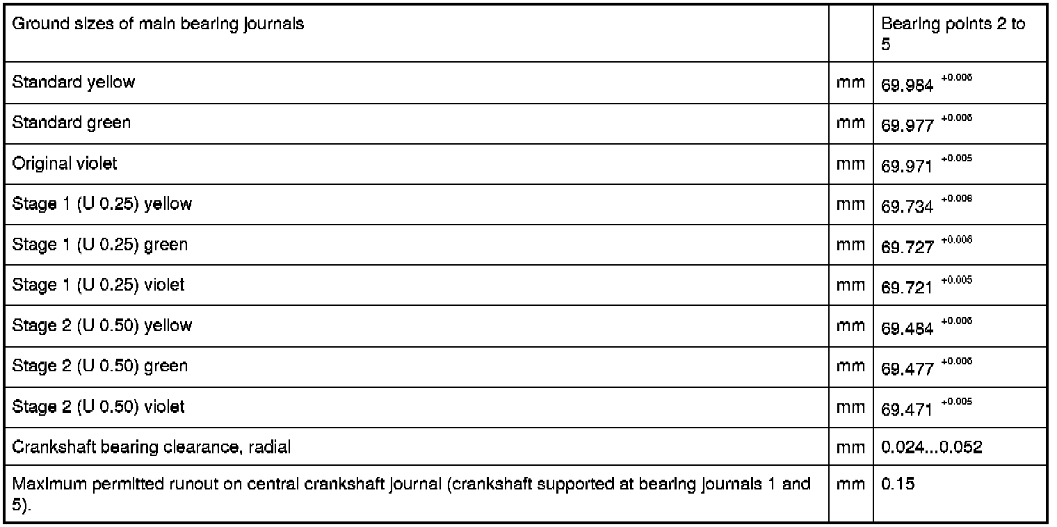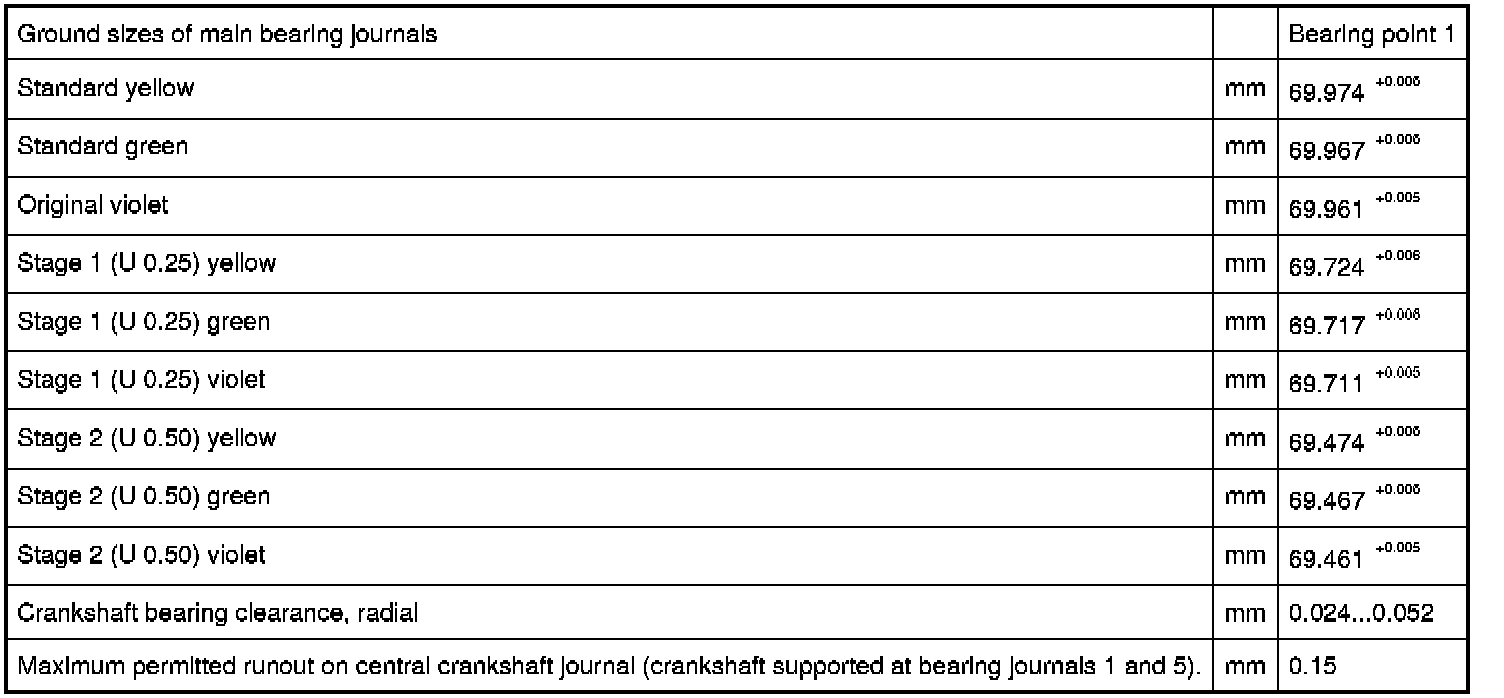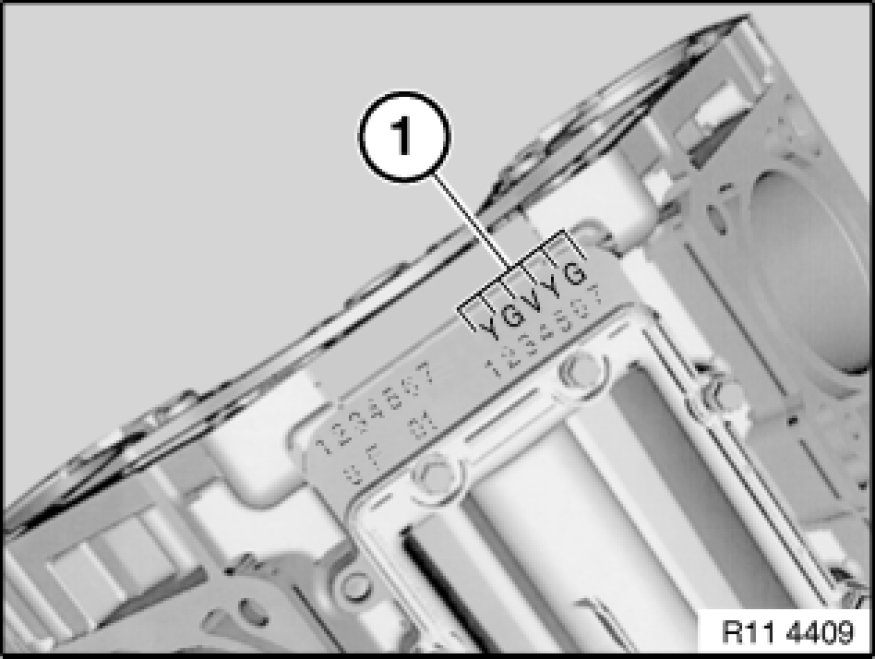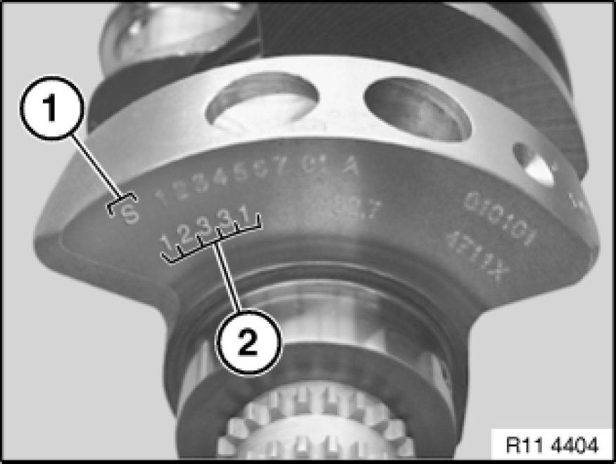 The letters (1) denote the bearing shell classification for the relevant bearing position from 1 to 5 in the crankcase and is located on the transmission side in the Vee. The first letter on the left applies to the first bearing position at the front.