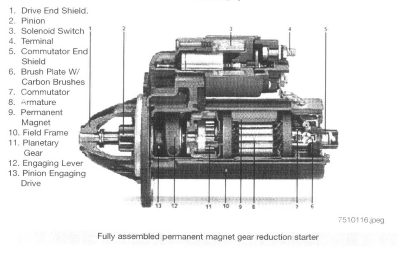 The overrunning clutch is located between the starter motor and the pinion and prevents the starter motor armature from being accelerated to an excessive speed when the engine starts.
