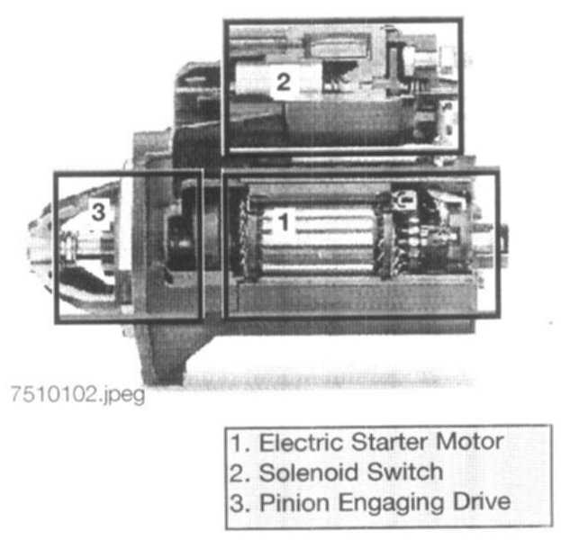 The Starter Motor provides the mechanical energy to rotate the engine through a direct or a gear reduction drive.