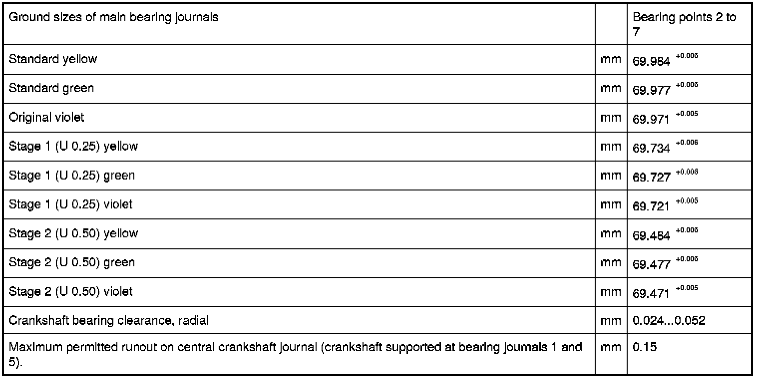 The letters (1) denote the bearing shell classification for the relevant bearing position from 1 to 5 in the crankcase and is located on the transmission side in the Vee. The first letter on the left applies to the first bearing position at the front.