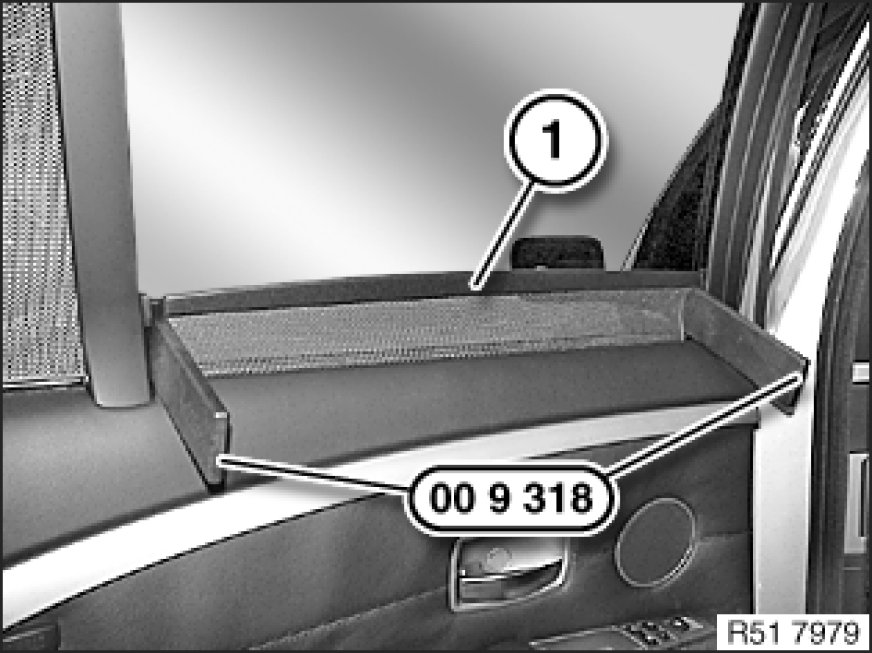 Retract roller sun blind (1) and block at pull rod with special tool 00 9 318 00 9 318 Multipurpose Wedge at bottom (left and right sliding members snap out)