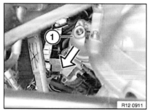 NOTE: For a better overview, this work step is shown from above and without the intake air manifold. Do not remove intake air manifold and carry out work from below.