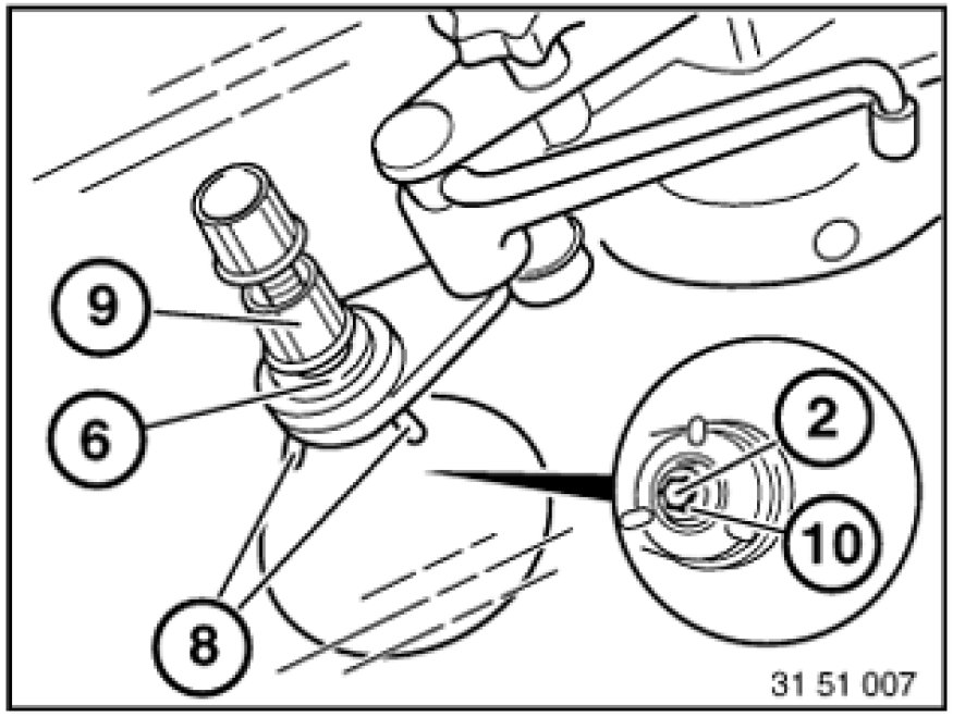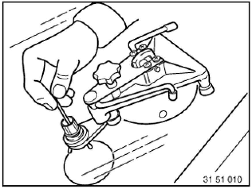 However, if air is still visible, swing sputnik (6) back over the impact spot and screw in knurled head screw (7) as far as before. Repeat steps starting with pressure/vacuum alternation.