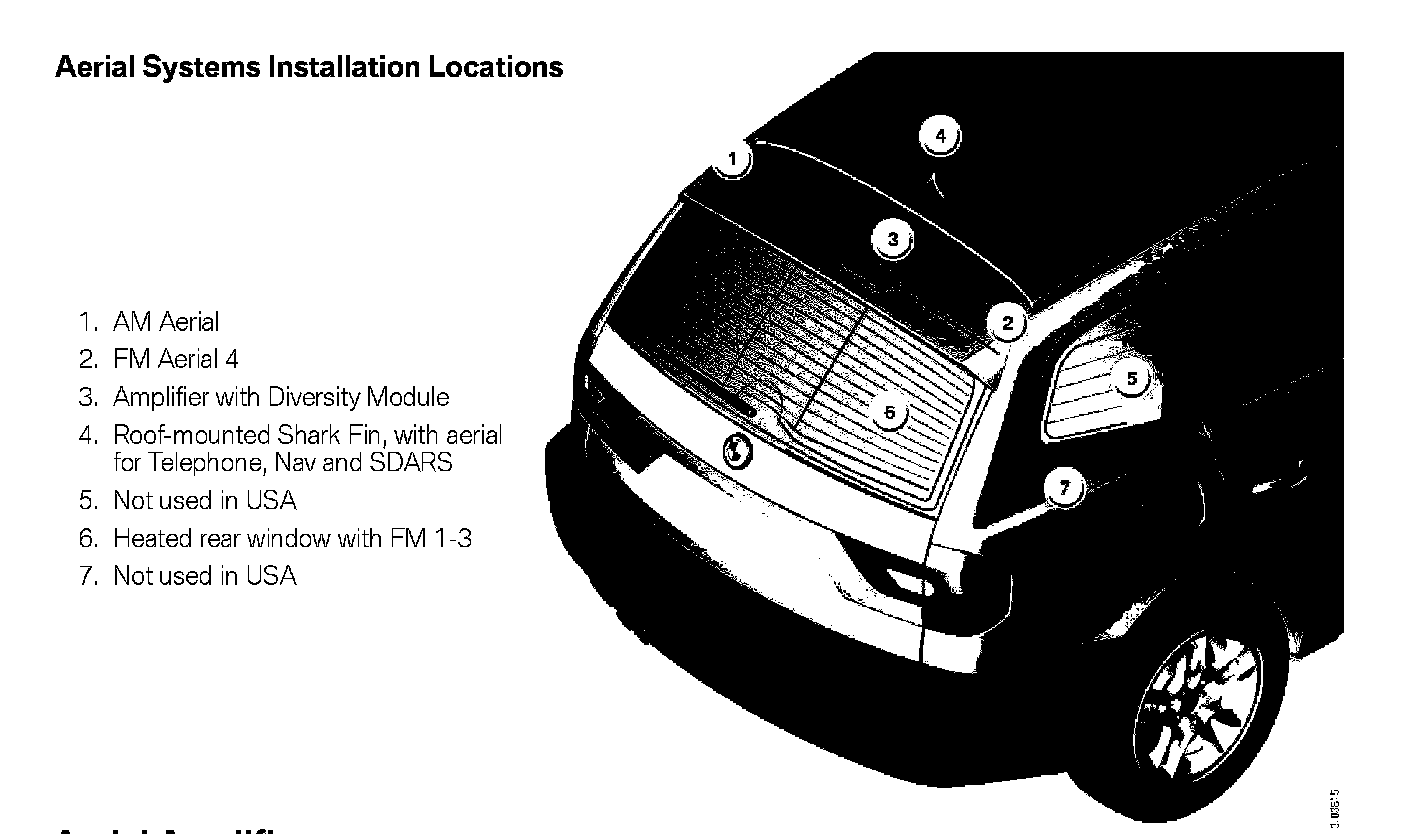 The AM aerial is in the rear spoiler. To avoid disturbances in AM reception through the third brake light in the rear spoiler, there is a suppressor filter in the feed line to the third brake light.