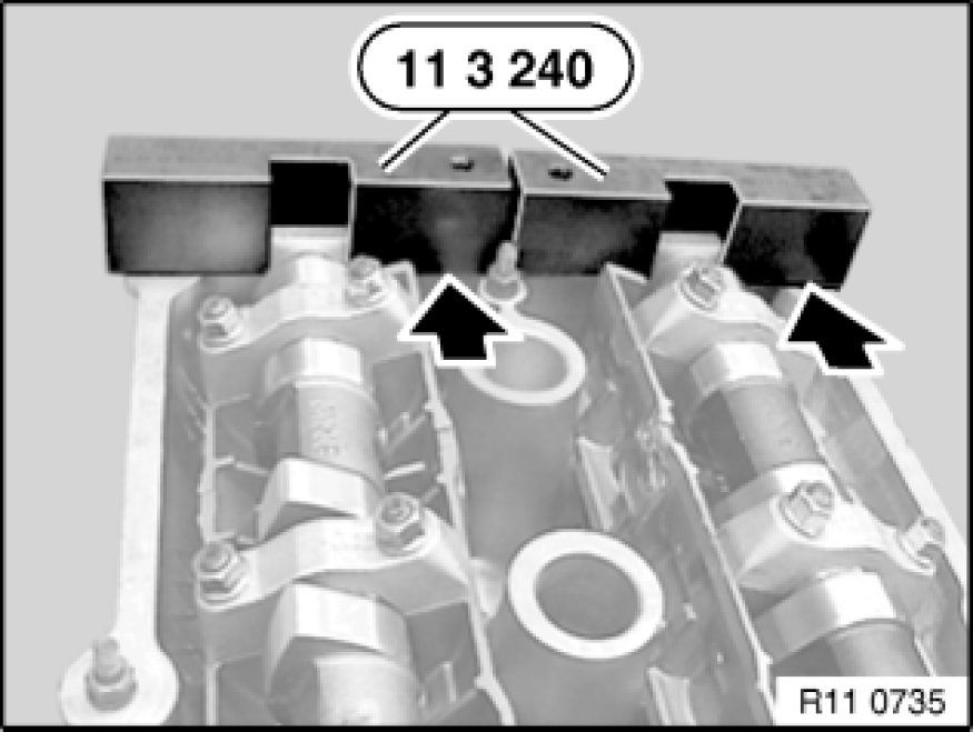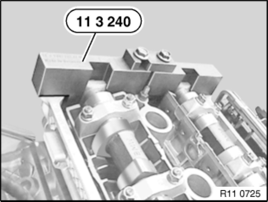 Secure camshafts with special tool 11 3 240 11 3 240 Locking Fixture.