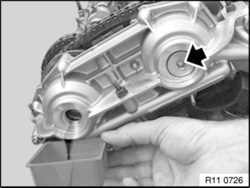 Remove cylinder for chain tensioning piston.