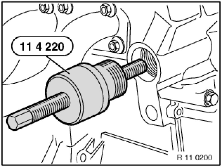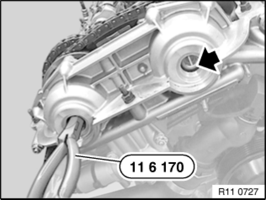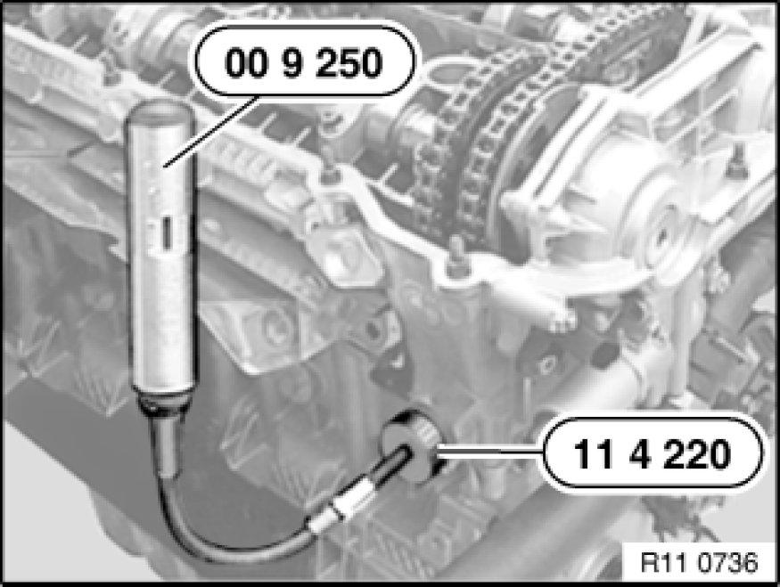 Secure crankshaft in firing TDC position with special tool 11 2 300 11 2 300 Plug Mandrel.