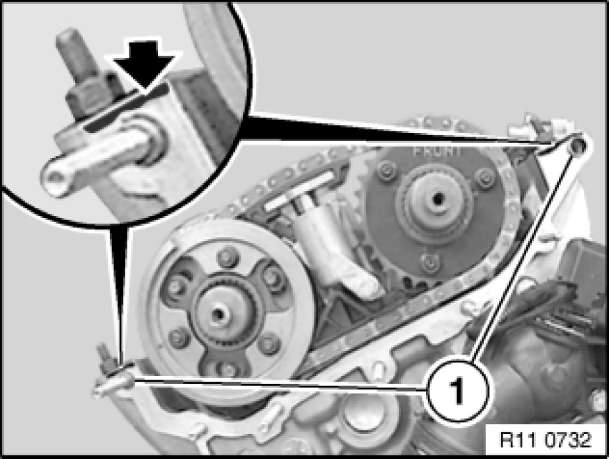 Preload tensioning rail with special tool 11 4 220 11 4 220 Chain Tensioner by rotating adjusting screw with special tool 00 9 250 00 9 250 Torque Wrench with Flexible Extension or standard torque wrench to 0.7 Nm.