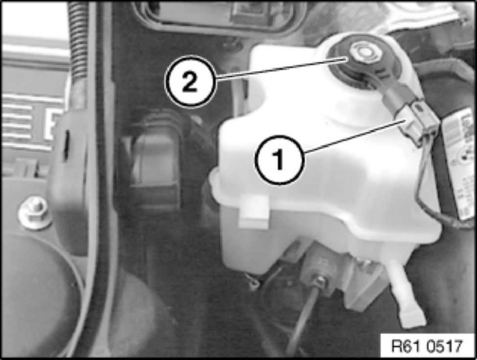Release screw ring and remove level switch for brake fluid (2).