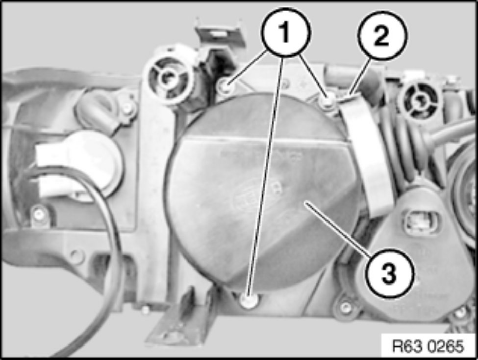 Turn ignition unit of xenon lamp (1) counterclockwise through approx. 45 degrees and remove.