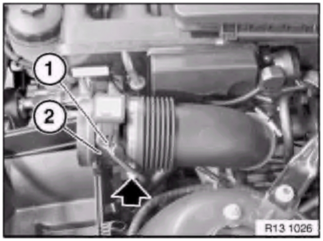 Check sealing ring (1) between air-mass flow sensor and intake filter housing for damage, replace if necessary.