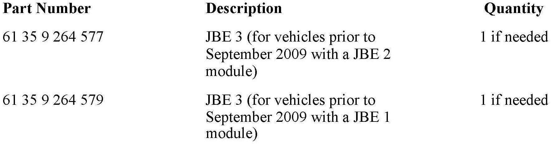 Install JBE 3 P/N: 61 35 9 264 577 for vehicles equipped with JBE 2.