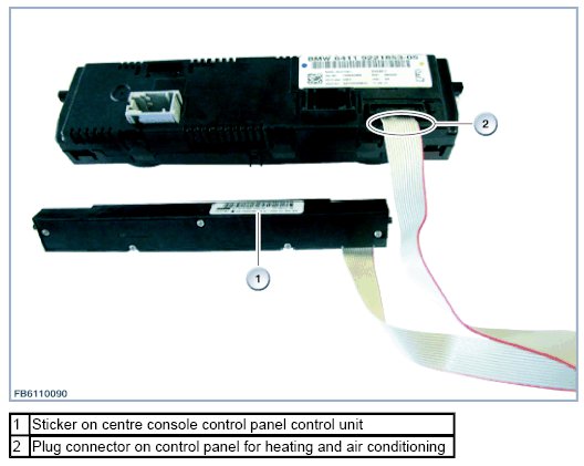 1. Remove the control panel for the heating and air conditioning system. Do not disconnect the plug connections on the control panel.