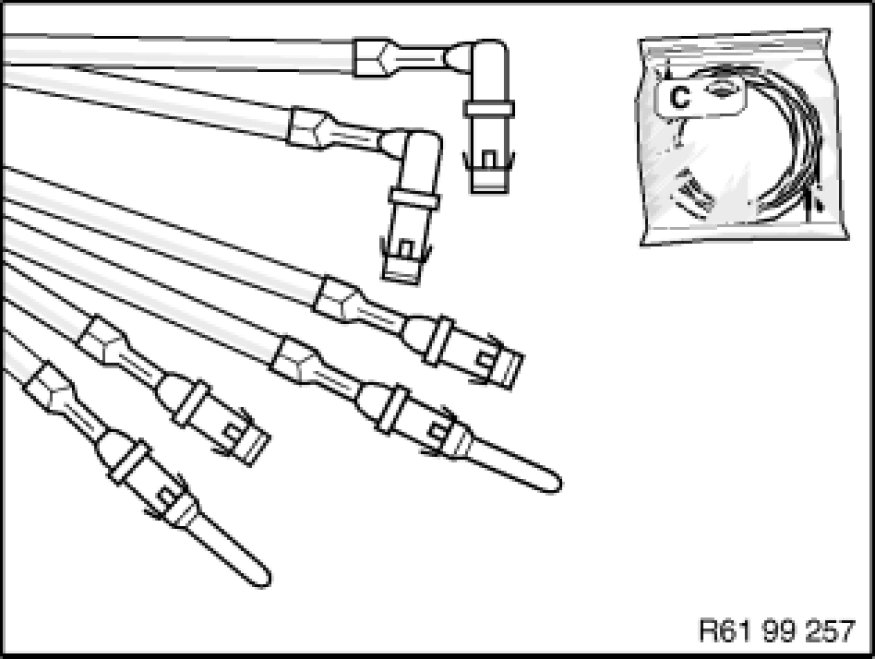 5. Make sure that no safety-related system according to connection scheme (e.g. anti-lock braking system, active rear-axle kinematics, airbags, etc.) are influenced. Otherwise replace faulty wiring harness or use repair cable (sourcing reference: BMW Parts Service)