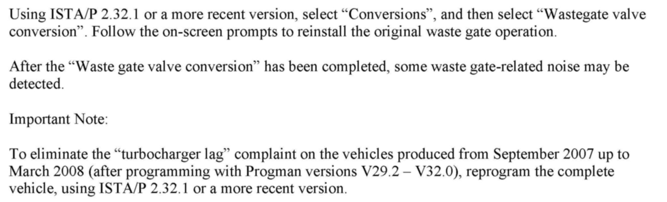Complaints received regarding a slight rattle from this area under steady acceleration in the 2,000 RPM to 4,000 RPM range are due to the rotating waste gate valve face; this is a characteristic of the mechanical waste gate. The rotating waste gate valve face is necessary to ensure proper sealing. This slight rattle noise is considered normal operation of the mechanical waste gate valve. No repair should be attempted for this type of rattling complaint.