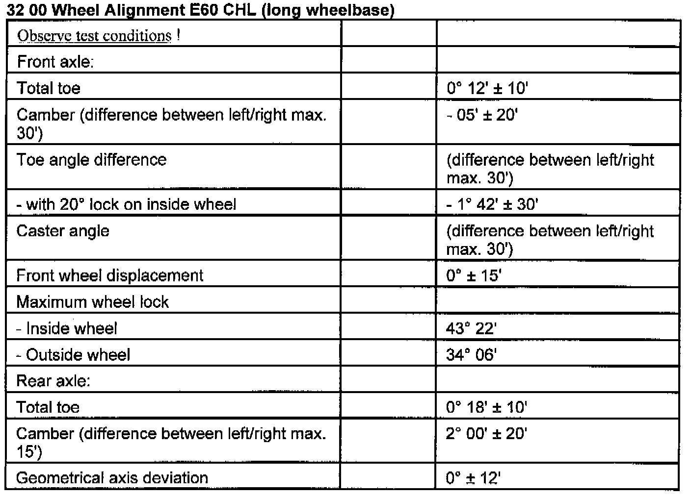 Observe The Following Test Conditions Prior To The Chassis / Wheel Alignment Check: