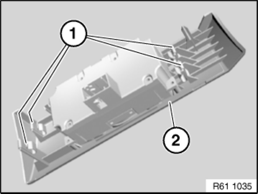 Make sure clips (1) are correctly seated on trim of lighting control unit (2).