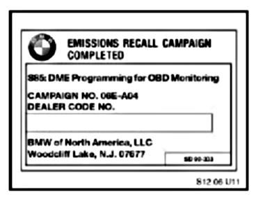 Voluntary Emissions Recall 06E-A04: S85 - DME Reprogramming for OBD Monitoring