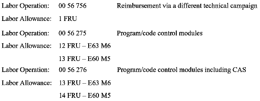 Update and recode the complete vehicle as per SI B09 05 01 (Coding, Individualization, Programming) Procedure B, using Progman V23.0 (Target Data Status E060-06-09-520), or higher.