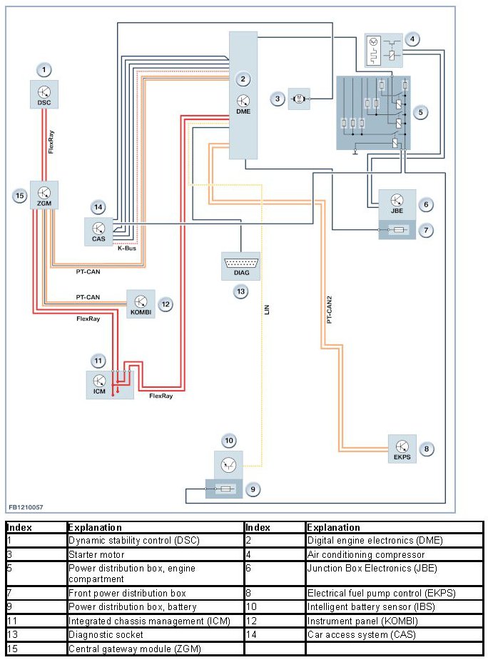 - Main bus systems: FlexRay, K-CAN, K-CAN2, MOST, PT-CAN and PT-CAN2