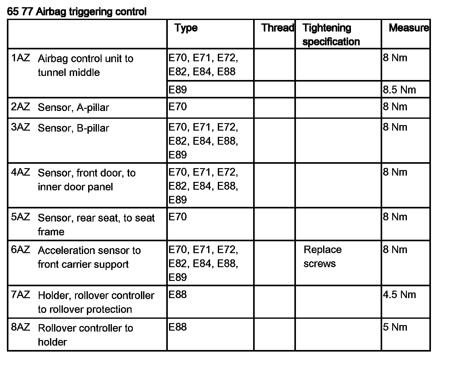 Tightening torque 65 77 1AZ .