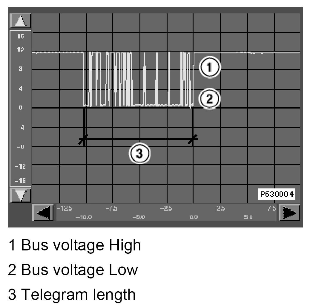A momentary recording of the bus voltage is shown in the following figure. This bus voltage is an example and shows the principle progression of a bus telegram.