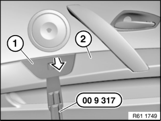 Feed rocker switch (1) out of door trim panel (2).