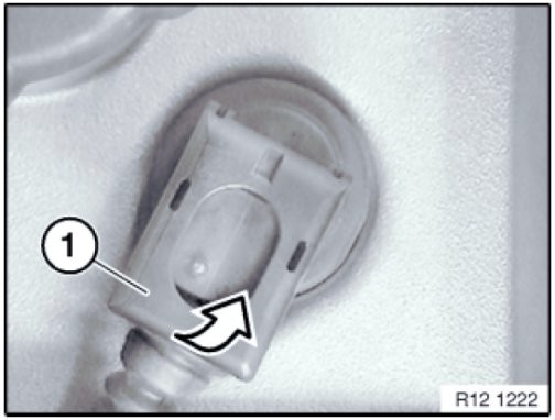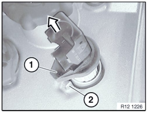 - The lug on the cylinder head (2) must be inserted in the opening on the underside (1) of the rubber seal.