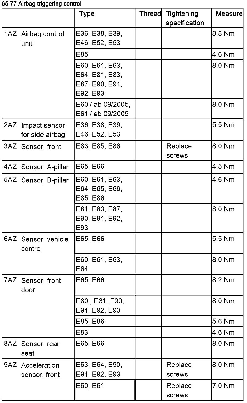 - Tightening Torque, 65 77 1AZ.