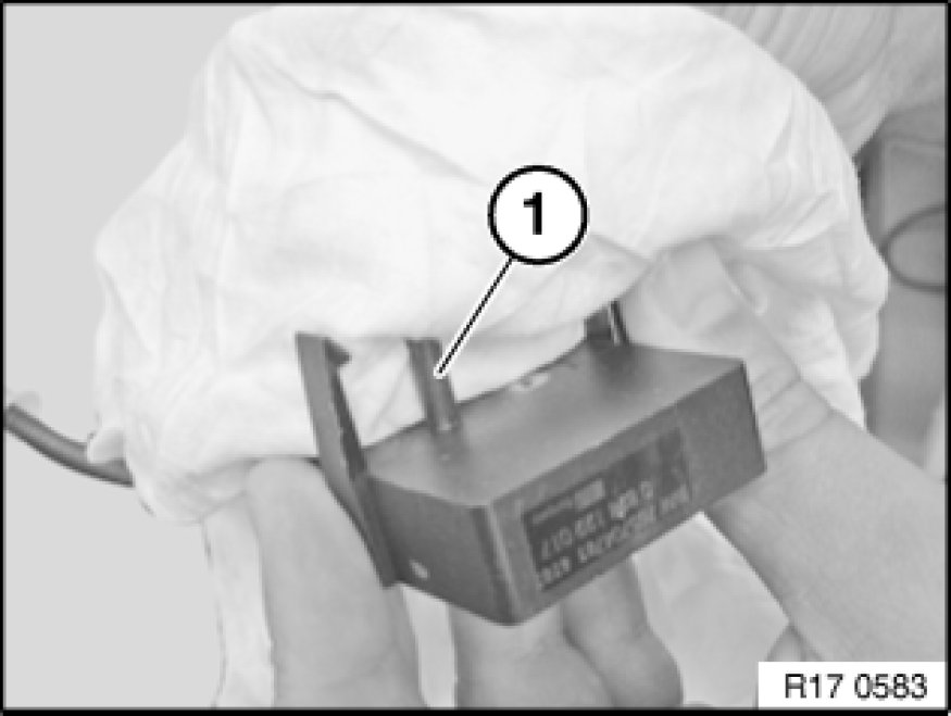 In addition, fill bore (1) with suitable degreasing agent, e.g. brake cleaner (refer to BMW Parts Service) and wait approx. 1 minute.