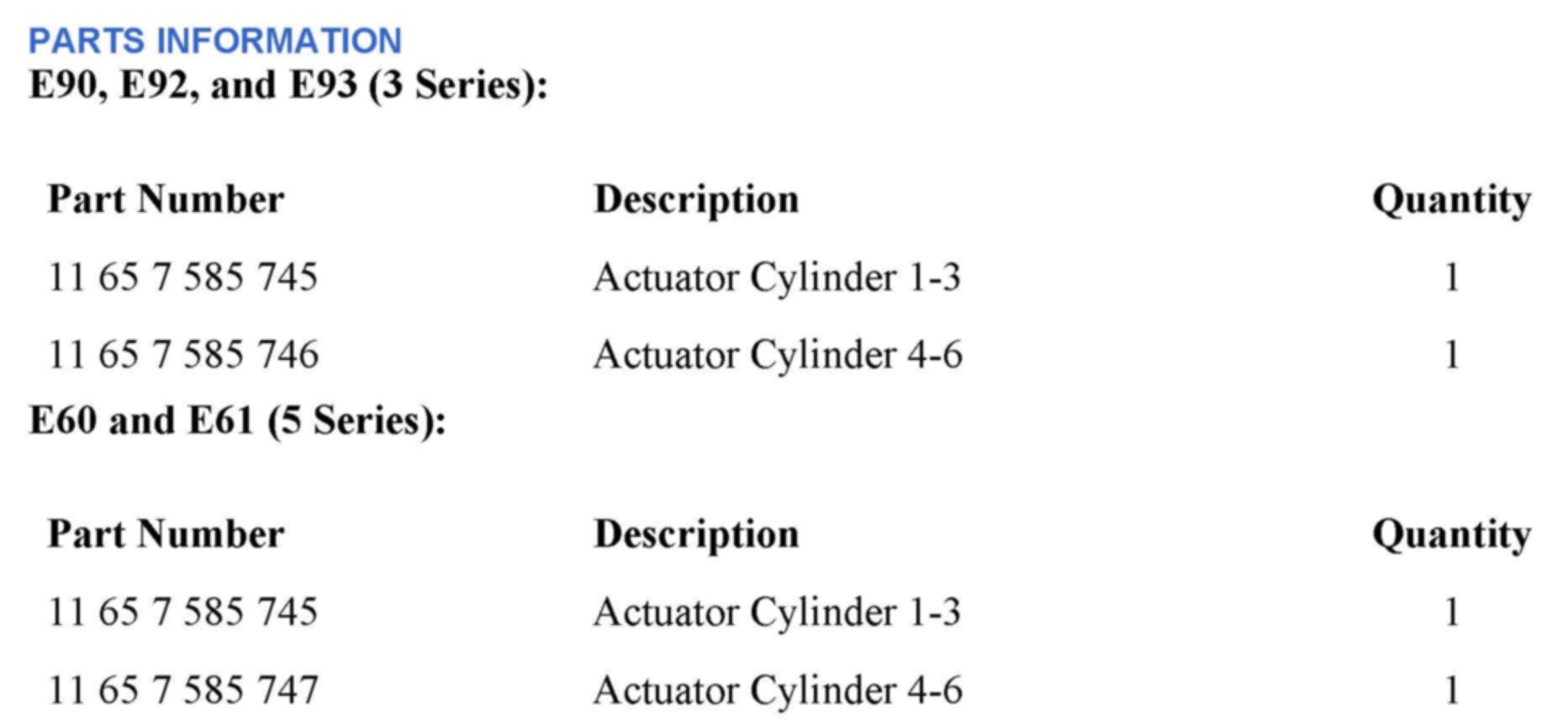 PARTS INFORMATION