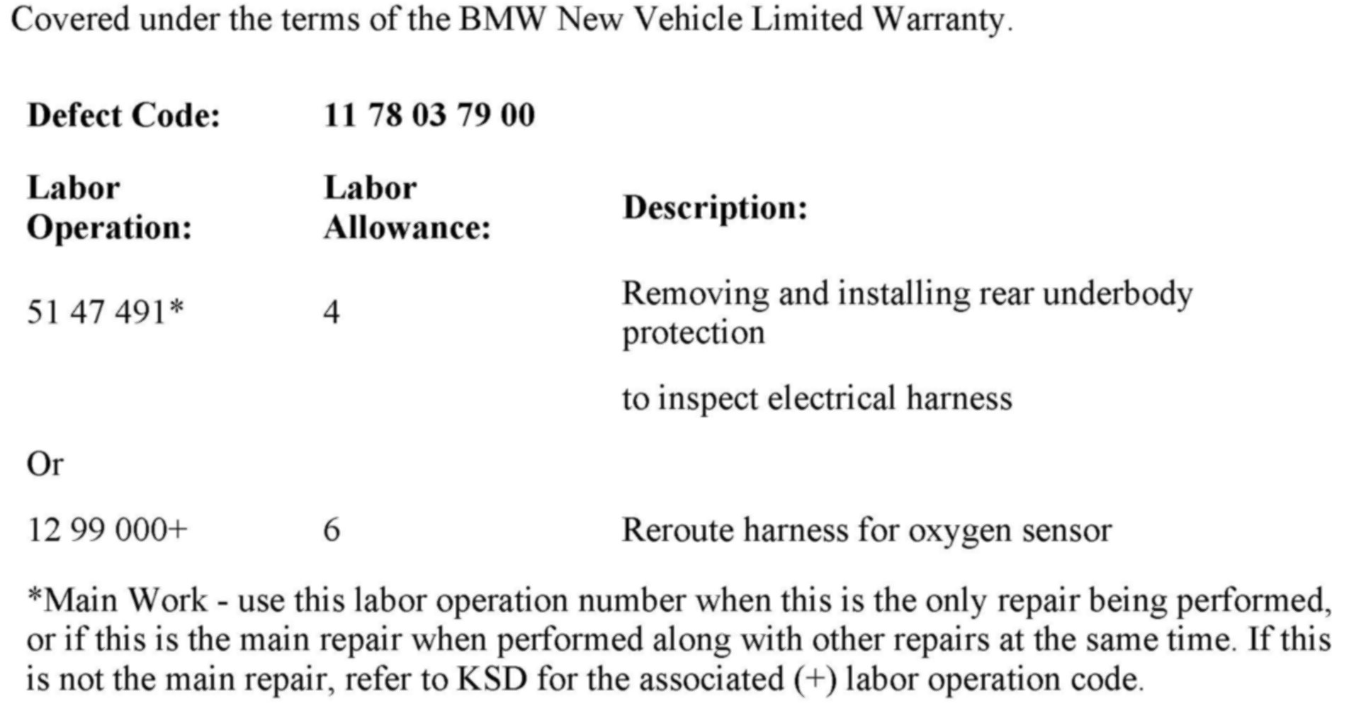1. Remove the rear underbody protection just below the M Double-clutch Transmission, as per Repair Instruction RA 51 47 491, Removing and installing/replacing rear underbody protection. Remove the post-catalytic converter oxygen sensor connectors from their mounting cradles; pull gently downward to inspect the oxygen sensor electrical harness.