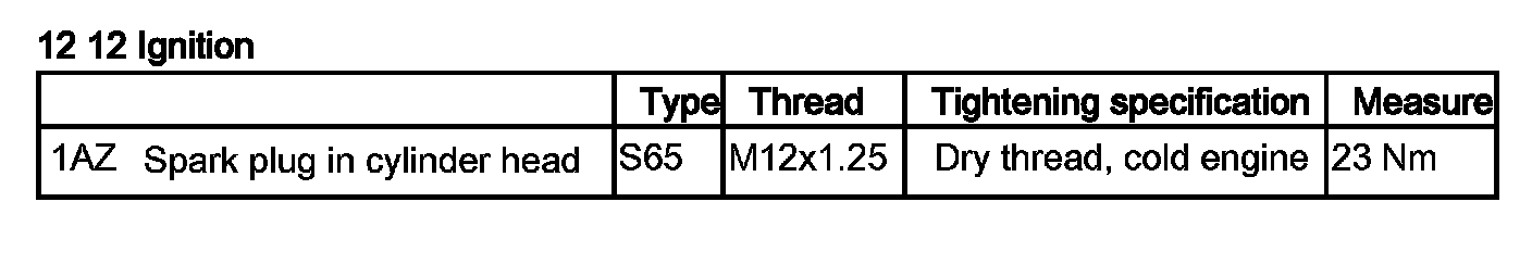 Tightening torque 12 12 2AZ.