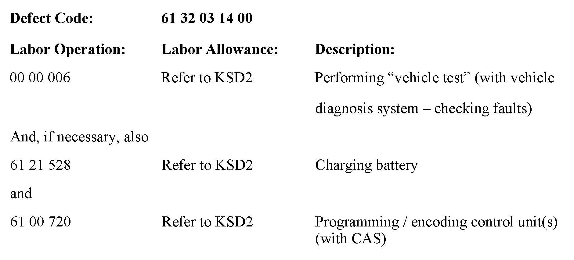 If performing other ISTA diagnostics and the related test plans results with eligible and covered work, claim this work with the applicable defect code and labor operations listed in KSD2.