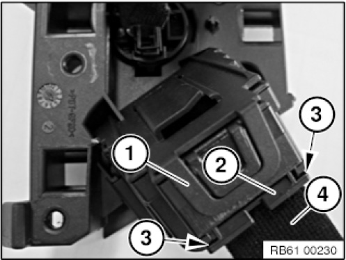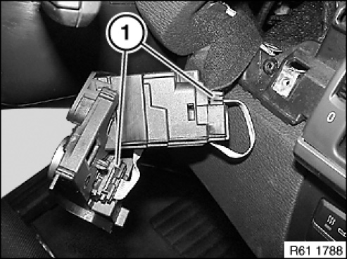 1. Check both sides of plug connection of ribbon cable (2) to slide-in unit for radio-operated key (1) for correct locking (3).
