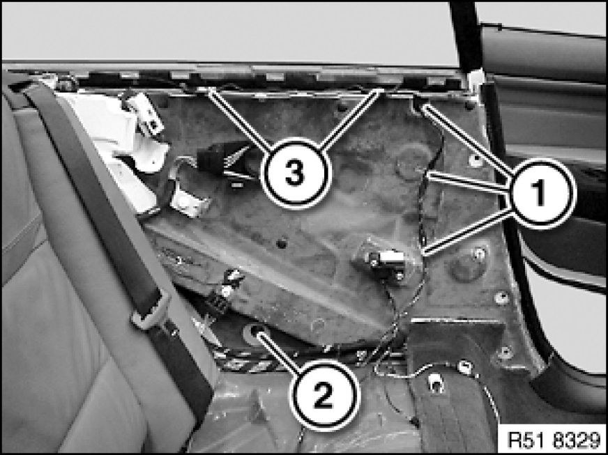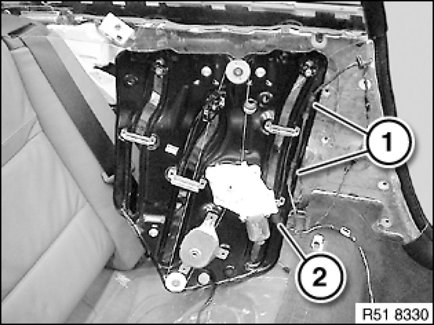 51 37 000 - Removing and installing complete rear left or right power window unit