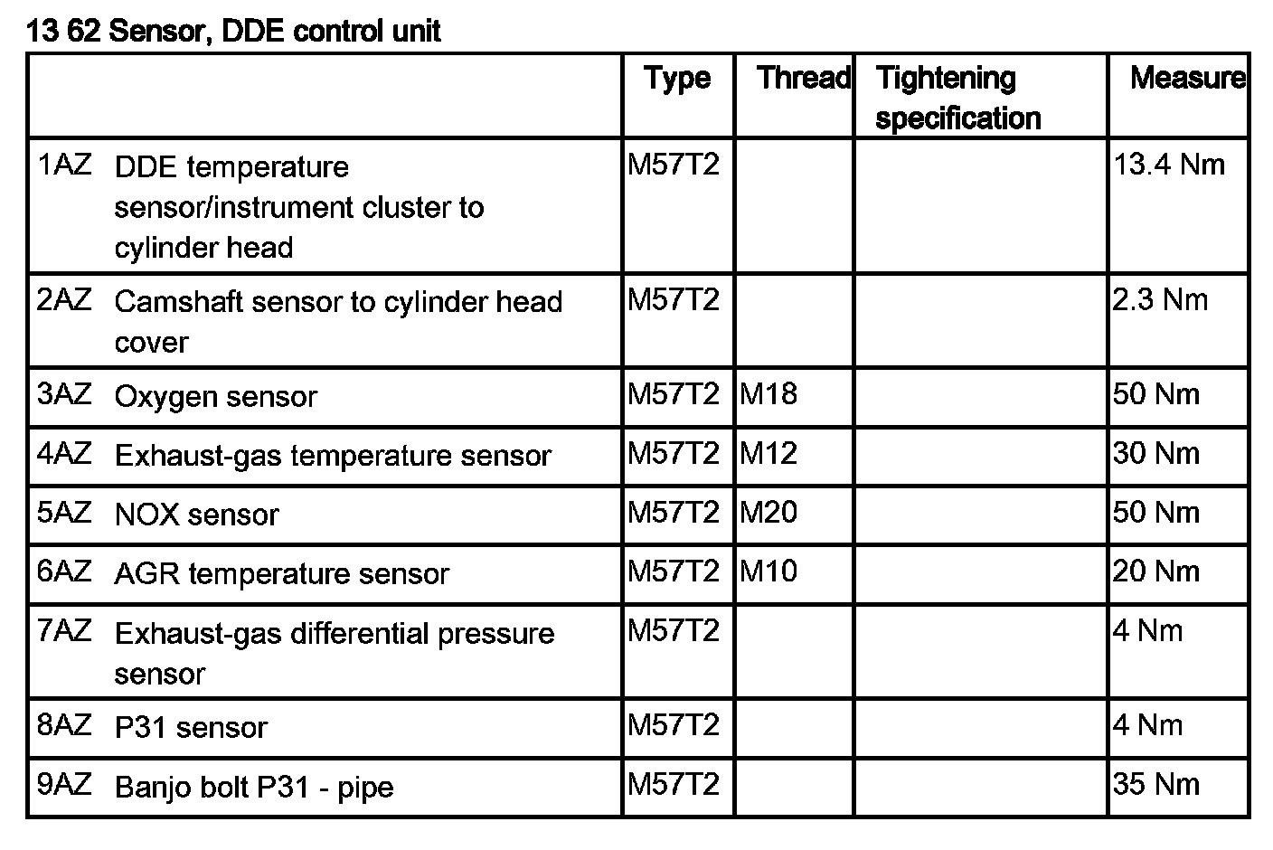 Tightening torque 13 62 7AZ.